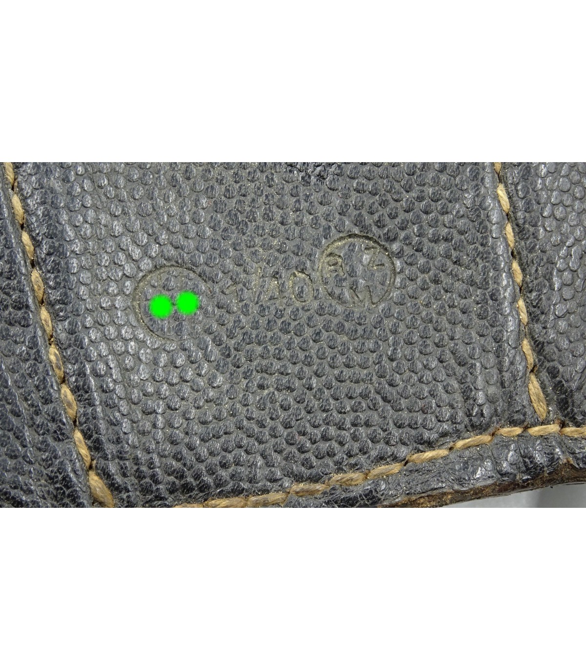 Pelle nera, rivetti in ferro, RZM-SS in rilievo sulla pelle. Proveniente dalla Bielorussia. Un oggetto raro. BUONE CONDIZIONI.
