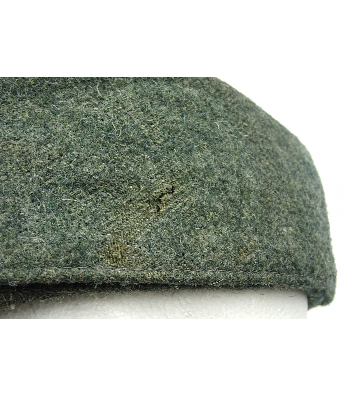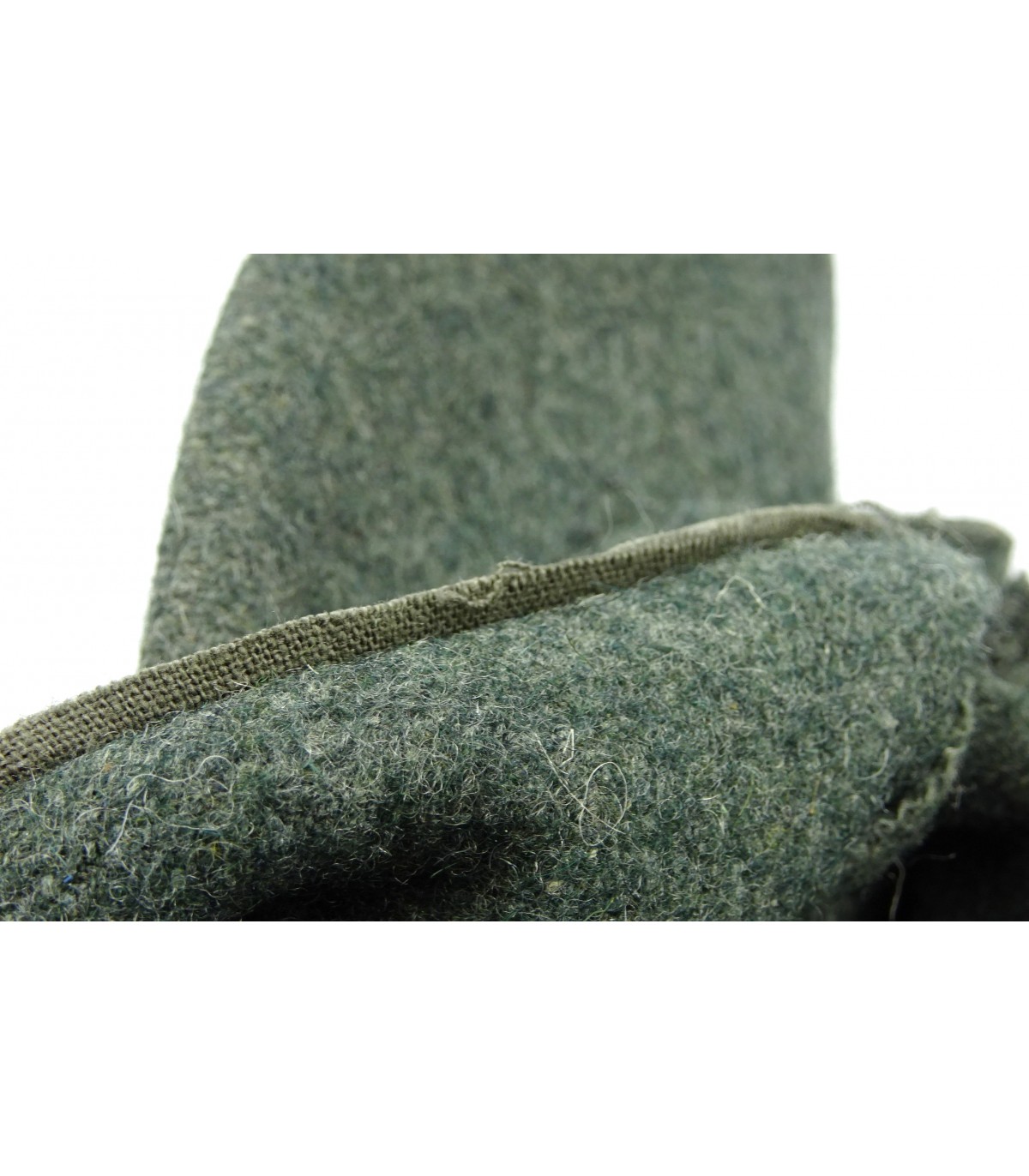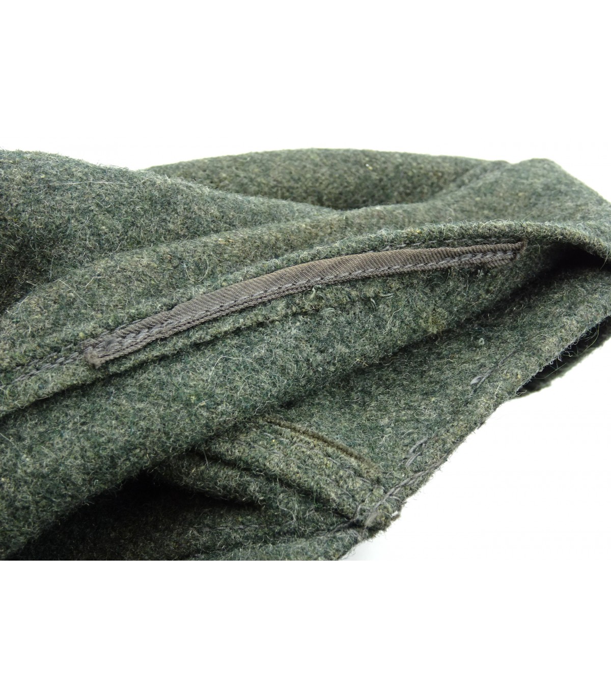 Completo. Distintivi originali montati. Tessuto feldgrau "ortica", utilizzato principalmente nella fabbricazione delle giacche Mle 43 SS. Patta in osso con bottone singolo. Rinforzi delle cuciture della patta. Passanti laterali. Fodera in rayon grigio. Mancano le marcature. Usato. 3 fori di tarme. Raro. BUONO STATO.