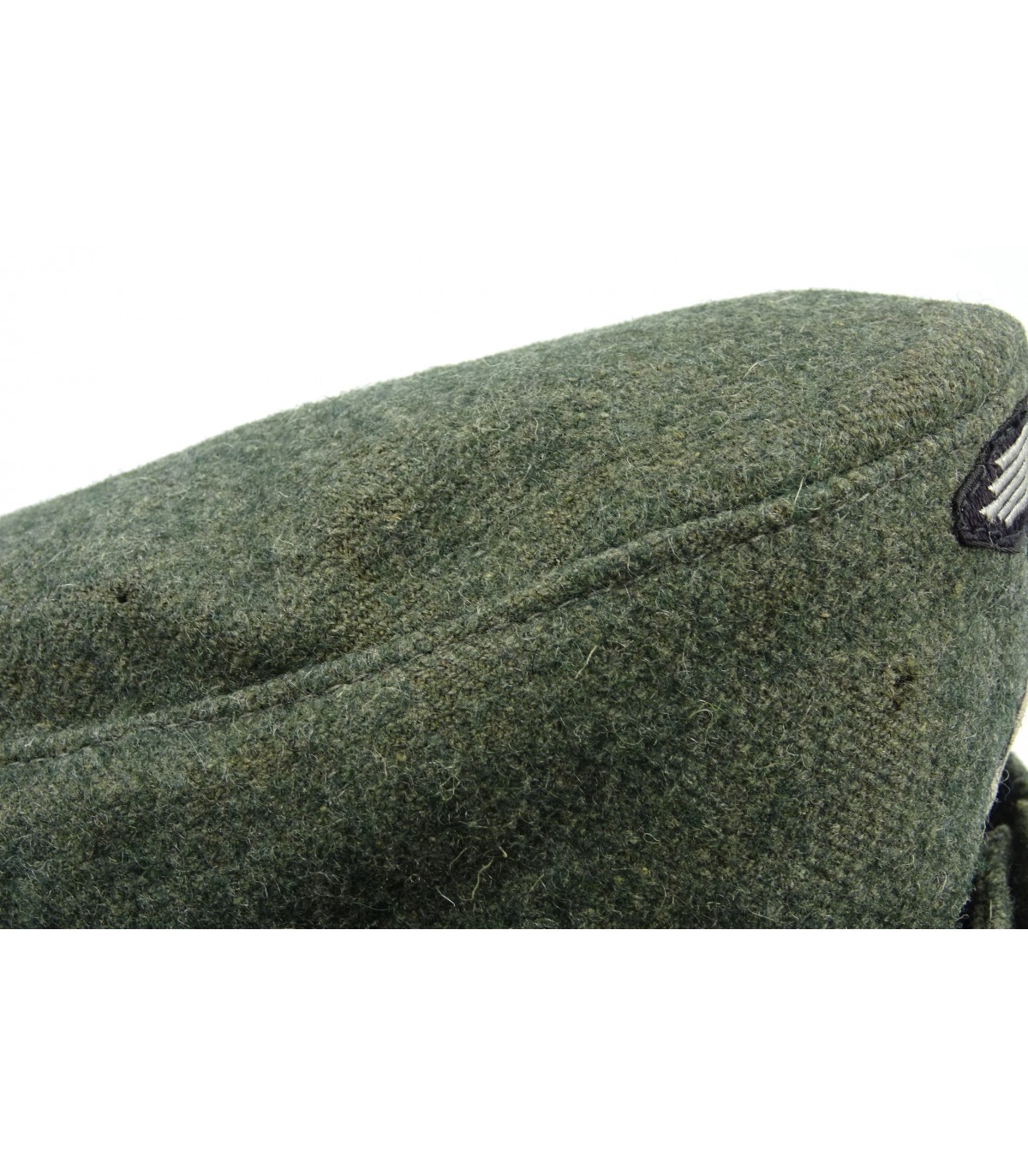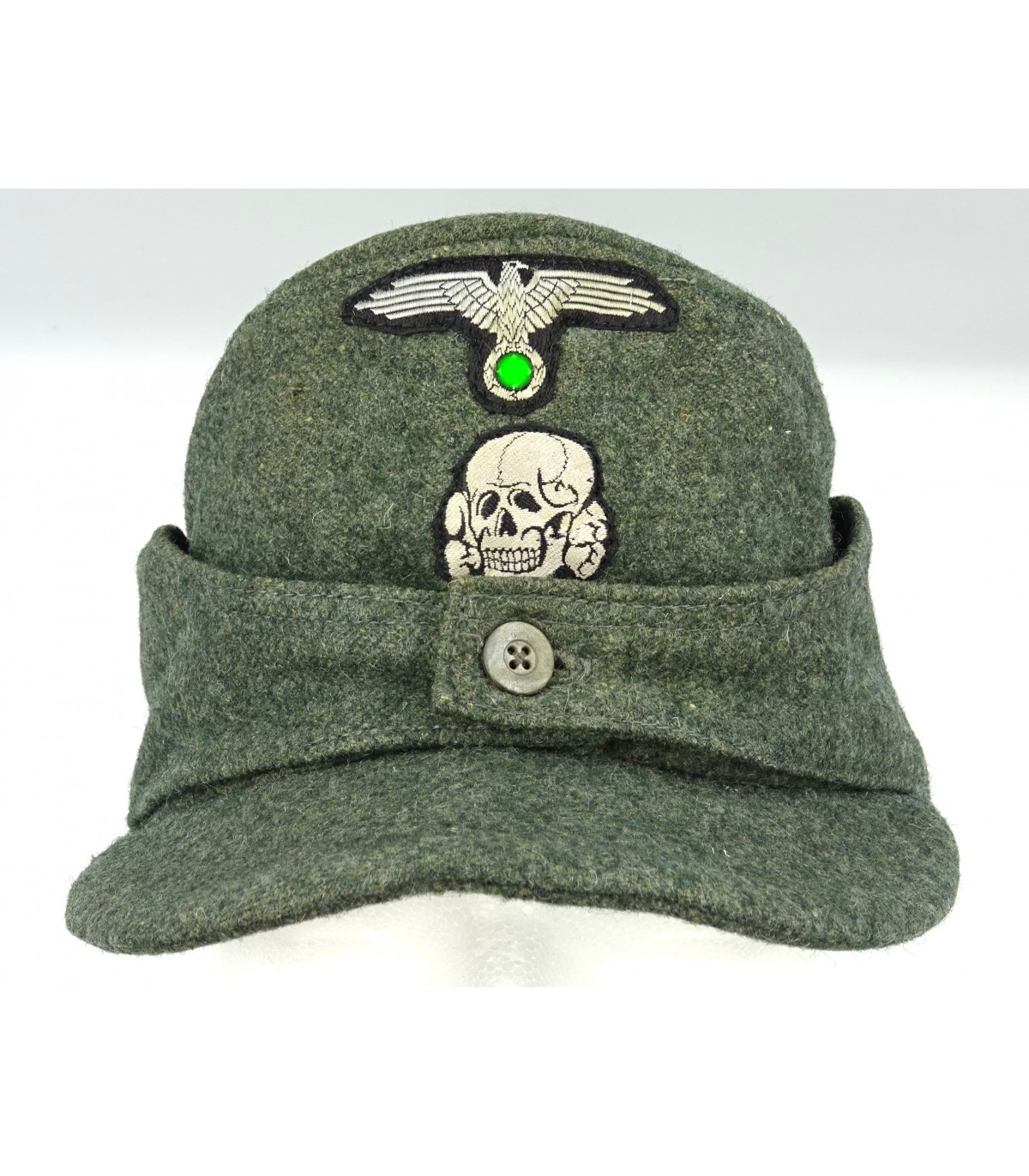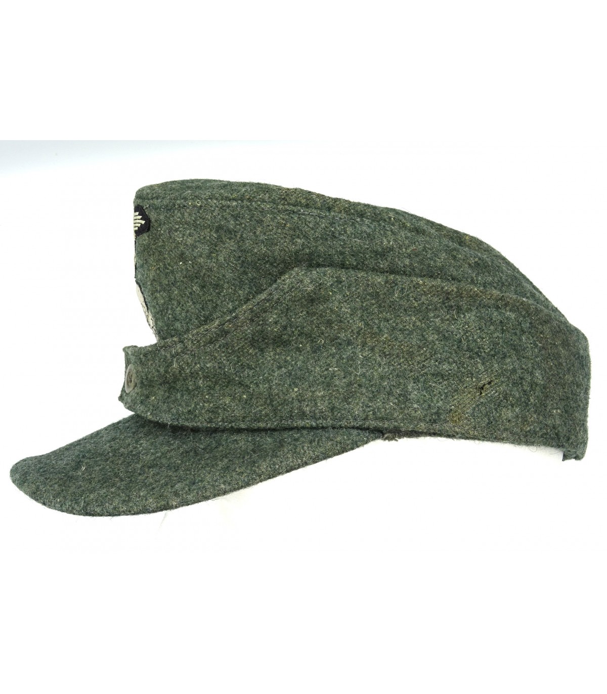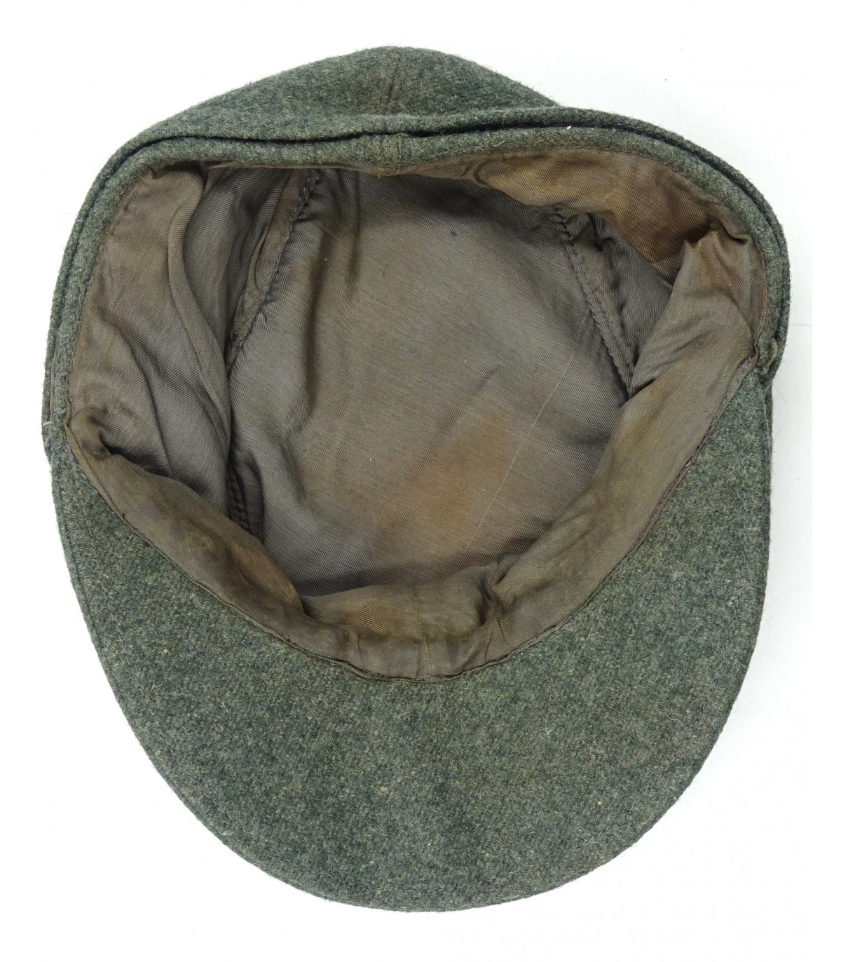 Completo. Distintivi originali montati. Tessuto feldgrau "ortica", utilizzato principalmente nella fabbricazione delle giacche Mle 43 SS. Patta in osso con bottone singolo. Rinforzi delle cuciture della patta. Passanti laterali. Fodera in rayon grigio. Mancano le marcature. Usato. 3 fori di tarme. Raro. BUONO STATO.