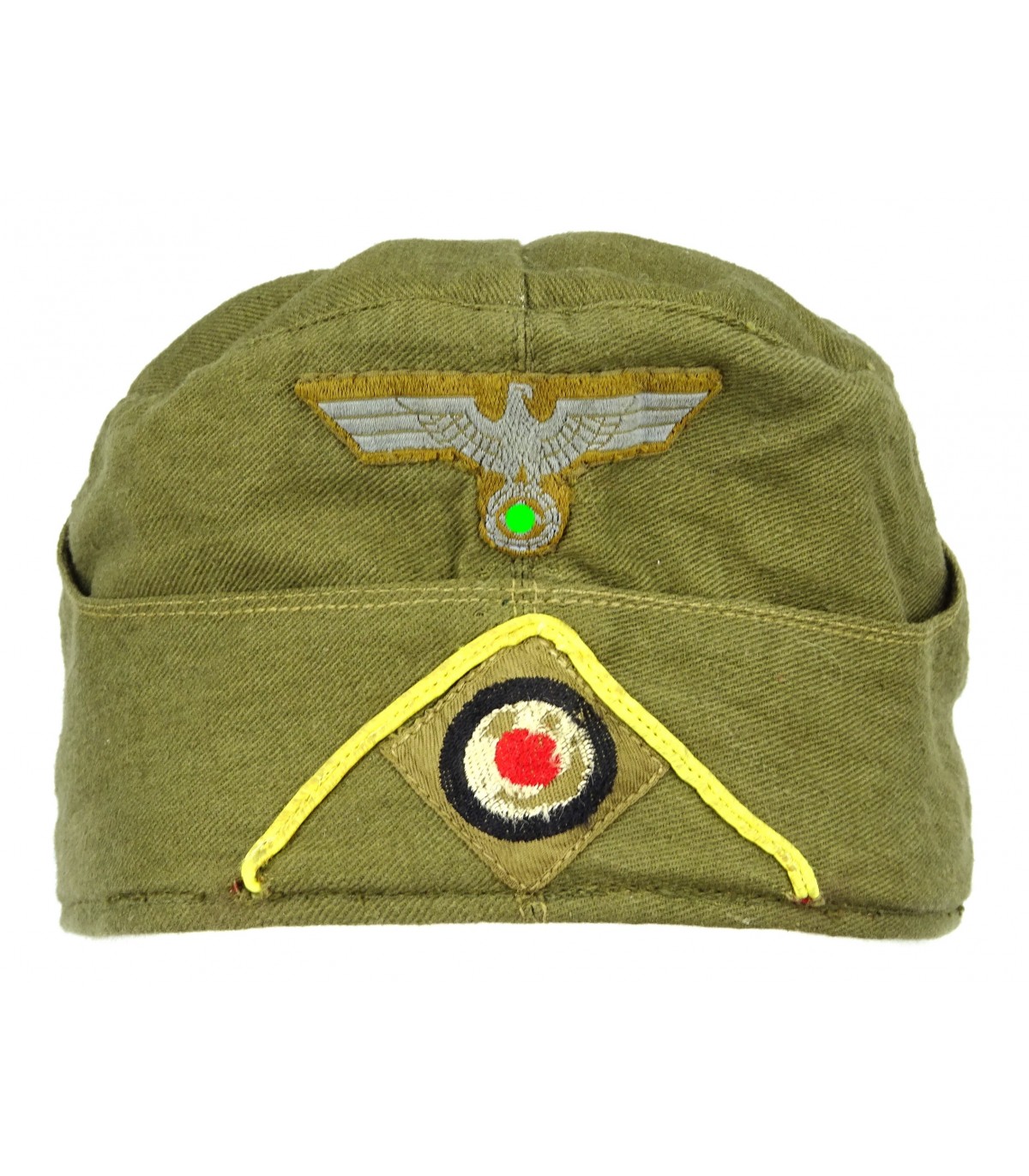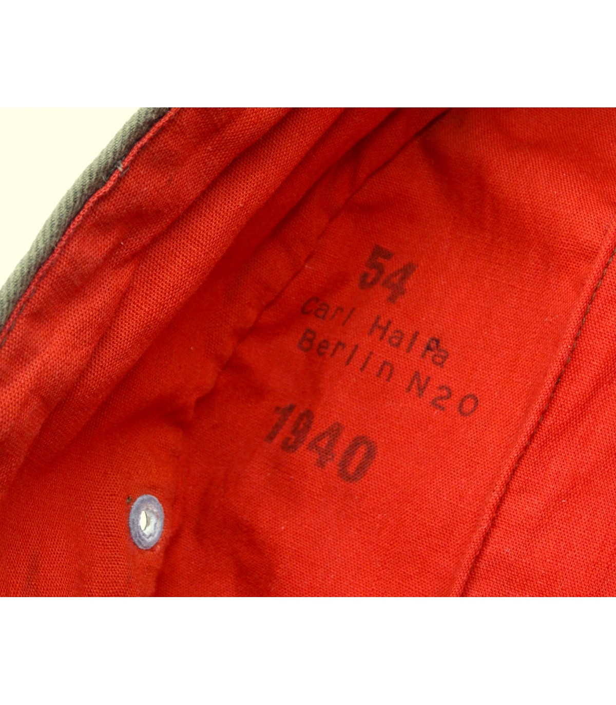 Completo di Insegne Bevo, tondo cucito a macchina, aquila cucita a mano. Chevron in colore dell'arma. Taglia 54. Marchio del fabbricante di Berlino, datato 1940 (prova che i completi tropicali erano già in produzione prima dell'intervento tedesco in Africa nel febbraio 1941). BE-TBE.