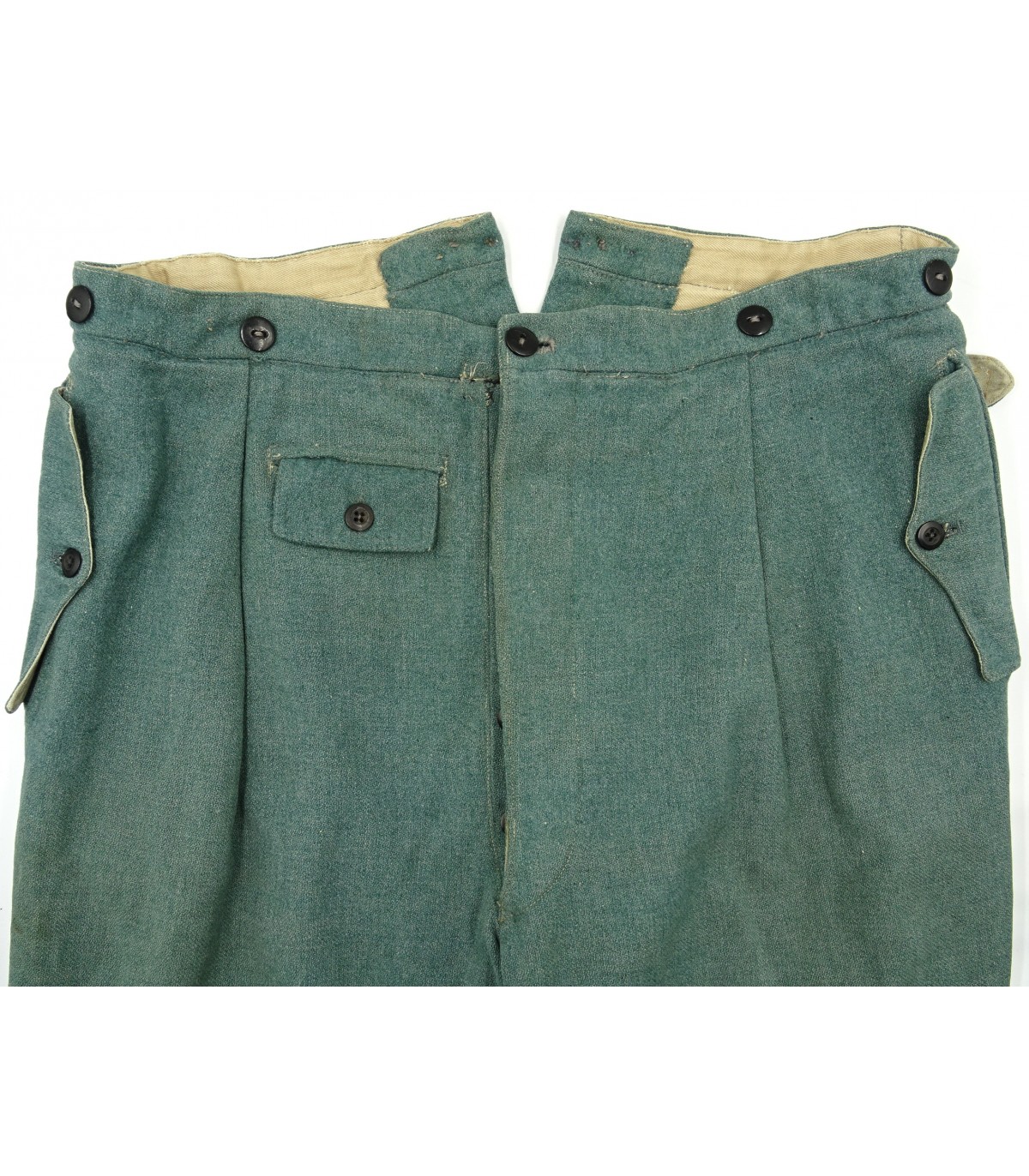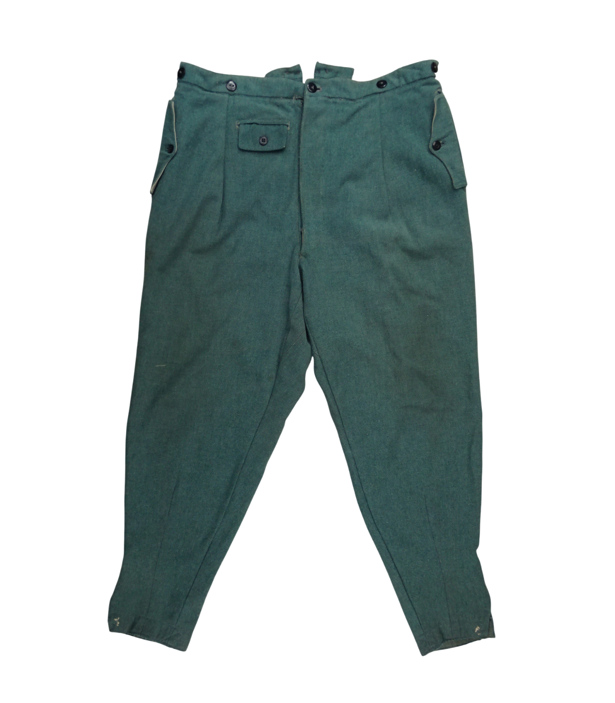 Tessuto per truppe. Tasche con patta abbottonata. Misura della vita 92. BE-.
