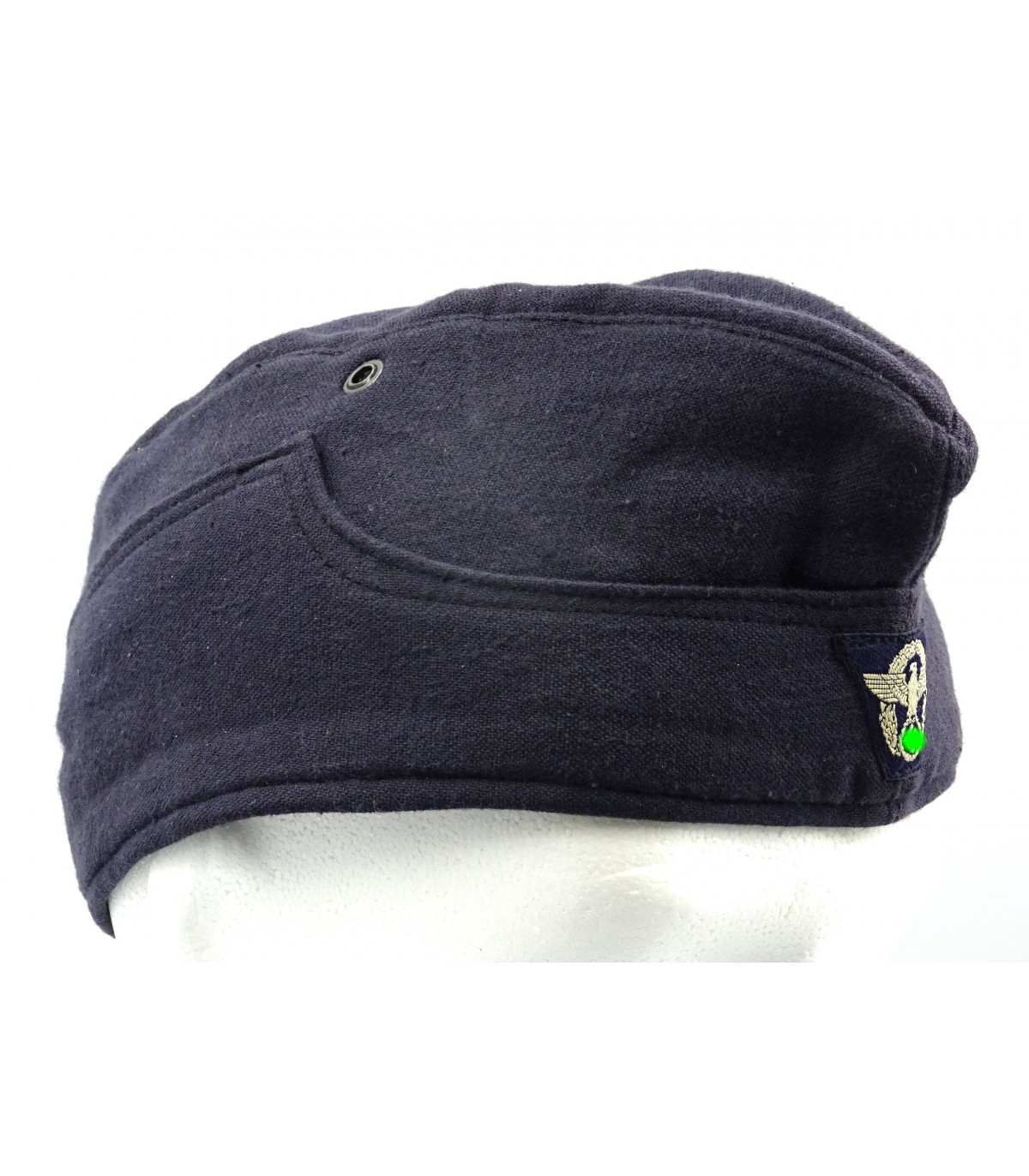 Marineblauw linnen. Voorzijde politie adelaar, origineel piqué. T57. Initialen van eigenaar. ZEER GOEDE STAAT.
